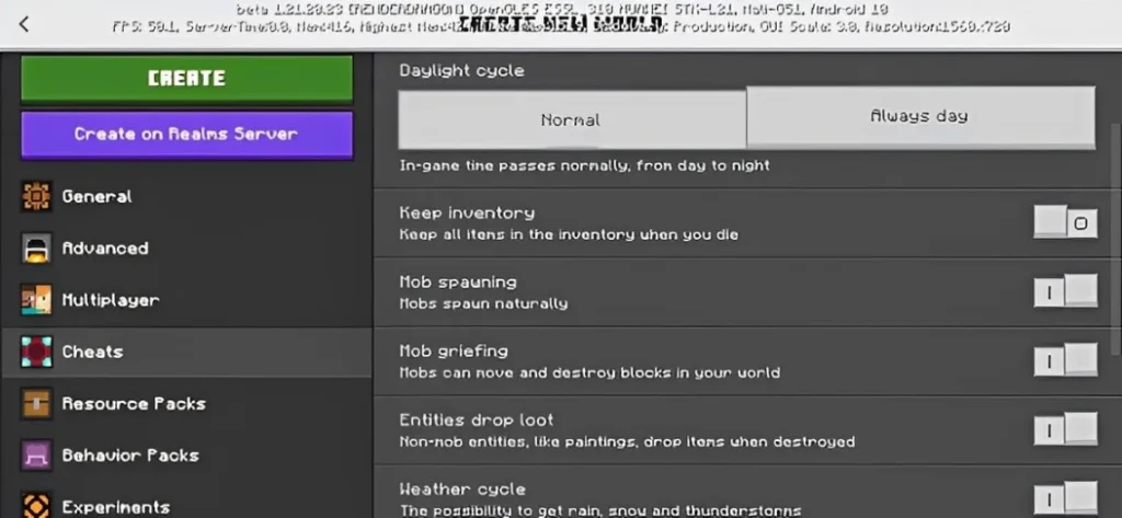 This mode also allows the user to use cheat codes. It is a place full of beauty but it is limited and finite. In this world you do not have the freedom to create biomes like dark forest, tundras and deserts etc.
